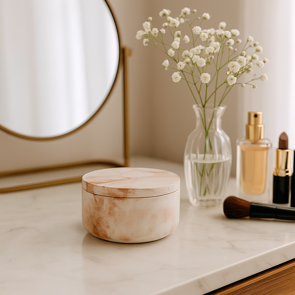This handcrafted jesmonite vessel—tinted with marbled hues of earthen clay and alabaster white—is a modern nod to the ancient truth found in Isaiah 64:8: “We are the clay, and You our potter.” With a smooth matte finish and fitted lid, Clay & Covenant is both functional and symbolic—ideal for storing keepsakes, prayer notes, or simply gracing a space with quiet elegance.
