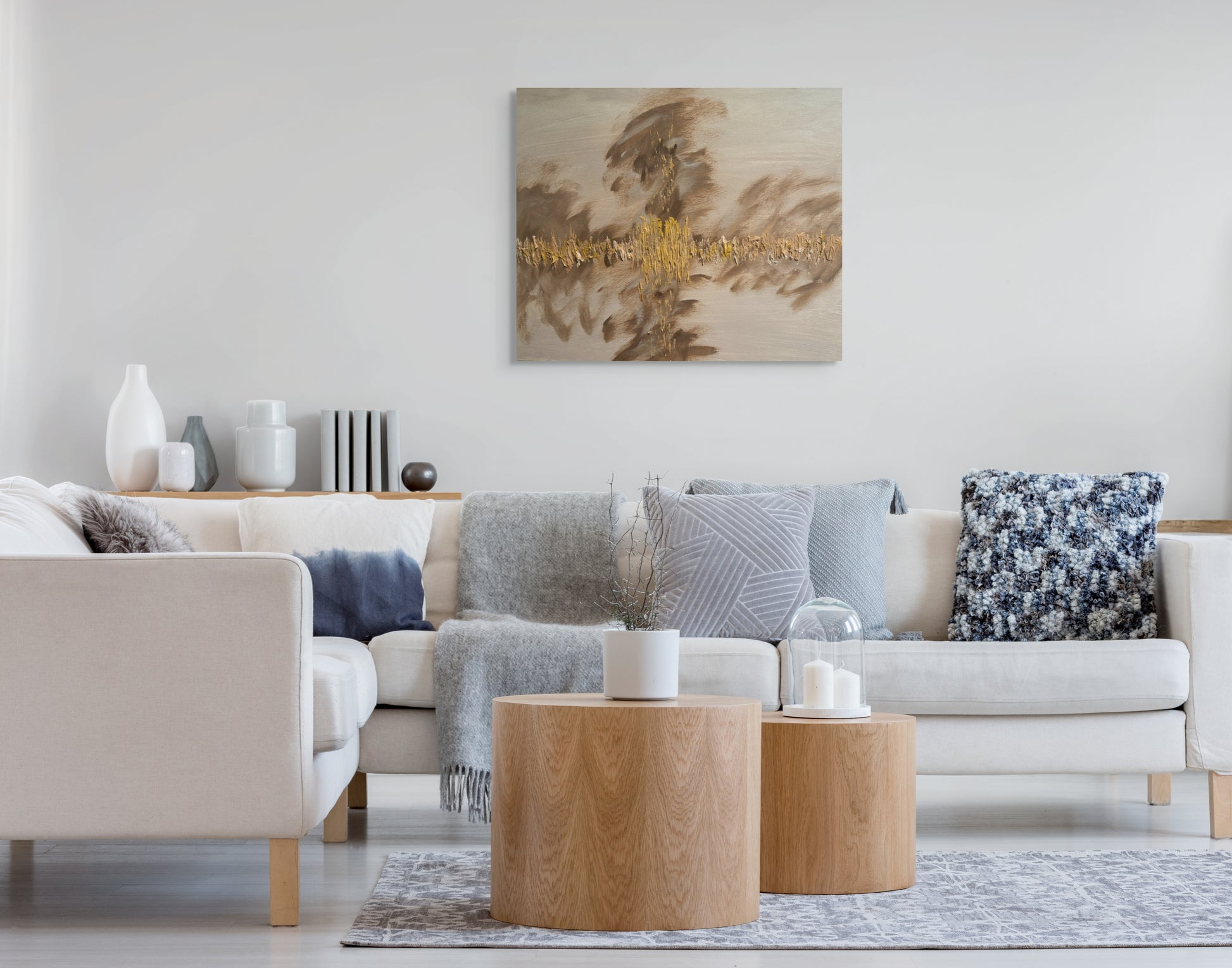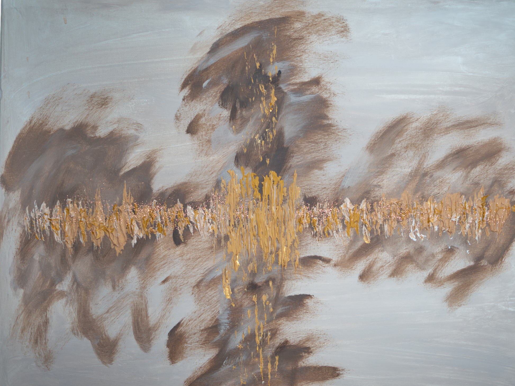 This stunning 18 x 24-inch abstract painting features a bold brown cross layered with an embedded gold abstract cross, set against a textured tan background. The interplay of earthy tones and radiant gold creates a striking representation of faith and redemption, making it a meaningful addition to any space. Please note, this is a canvas-only piece and does not include a frame. It also requires hanging hardware to be added for display. Perfect for showcasing on its own or pairing with your favorite frame to enhance its timeless beauty.